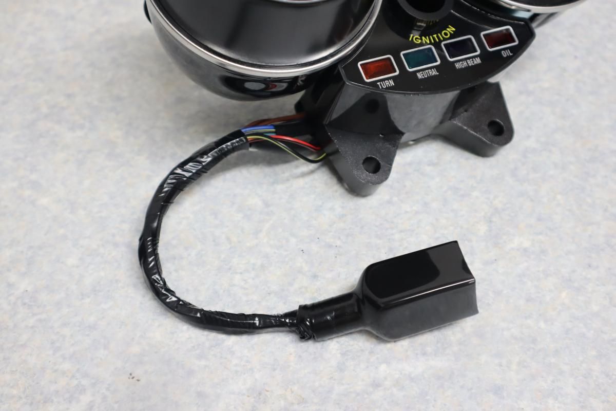 メーター、カバー、ステー、ハーネス、インジケーターのフルセットです。
